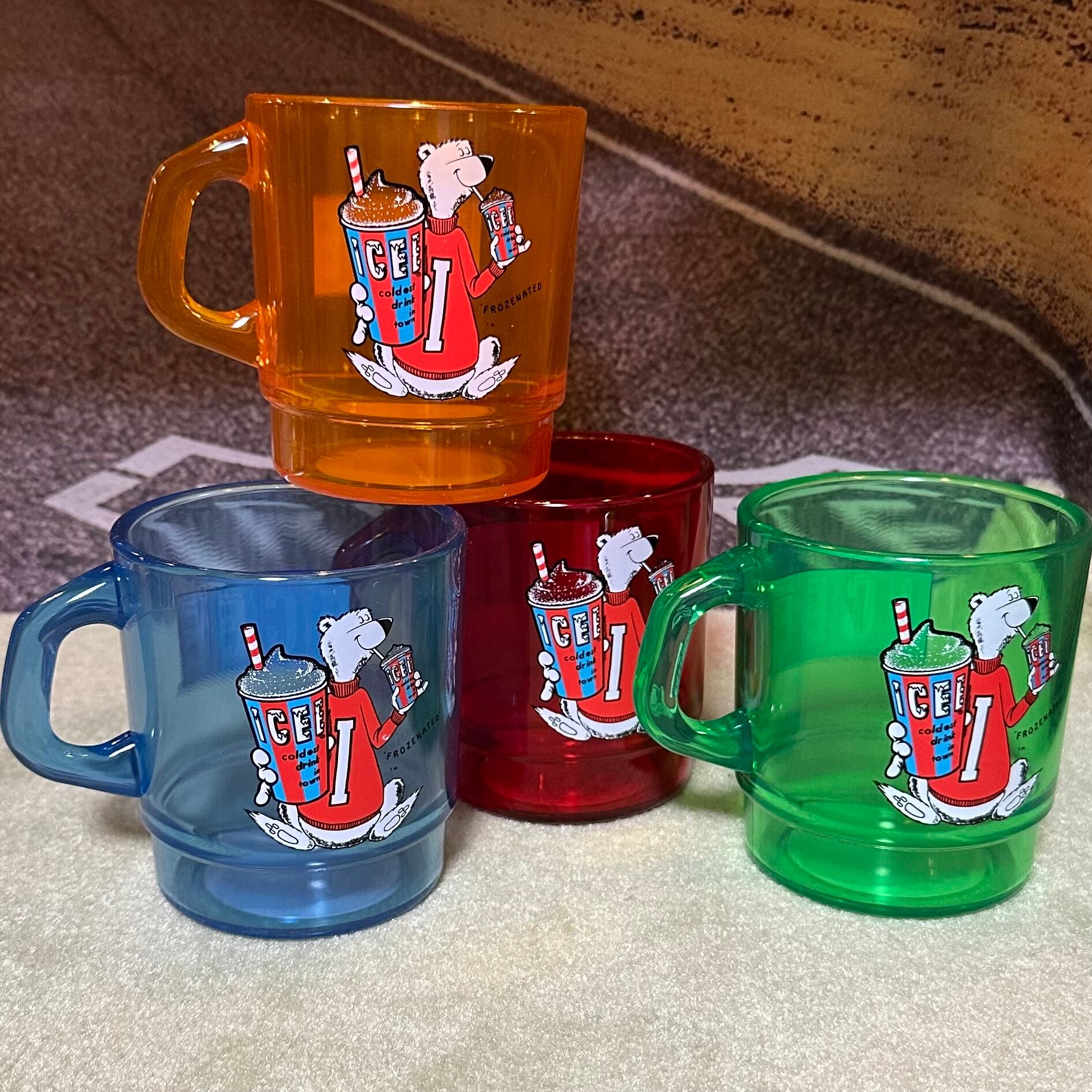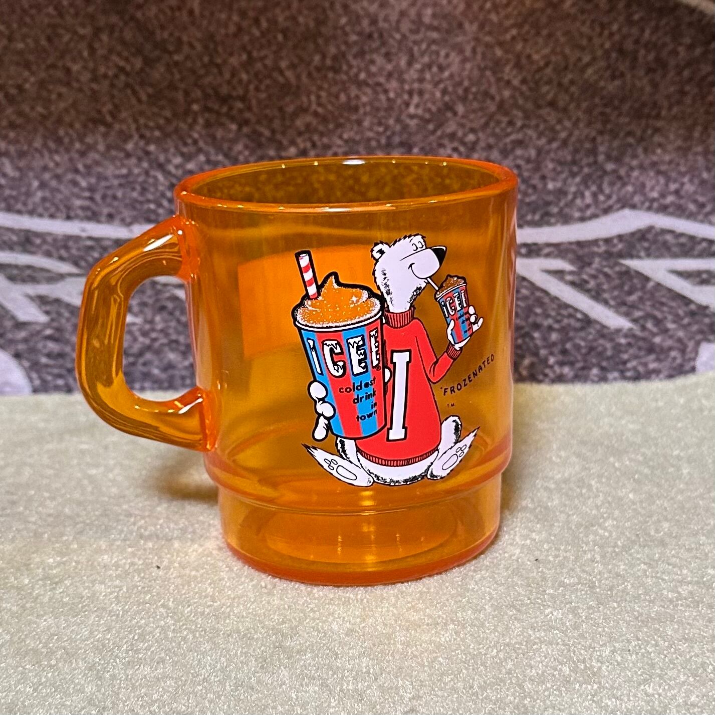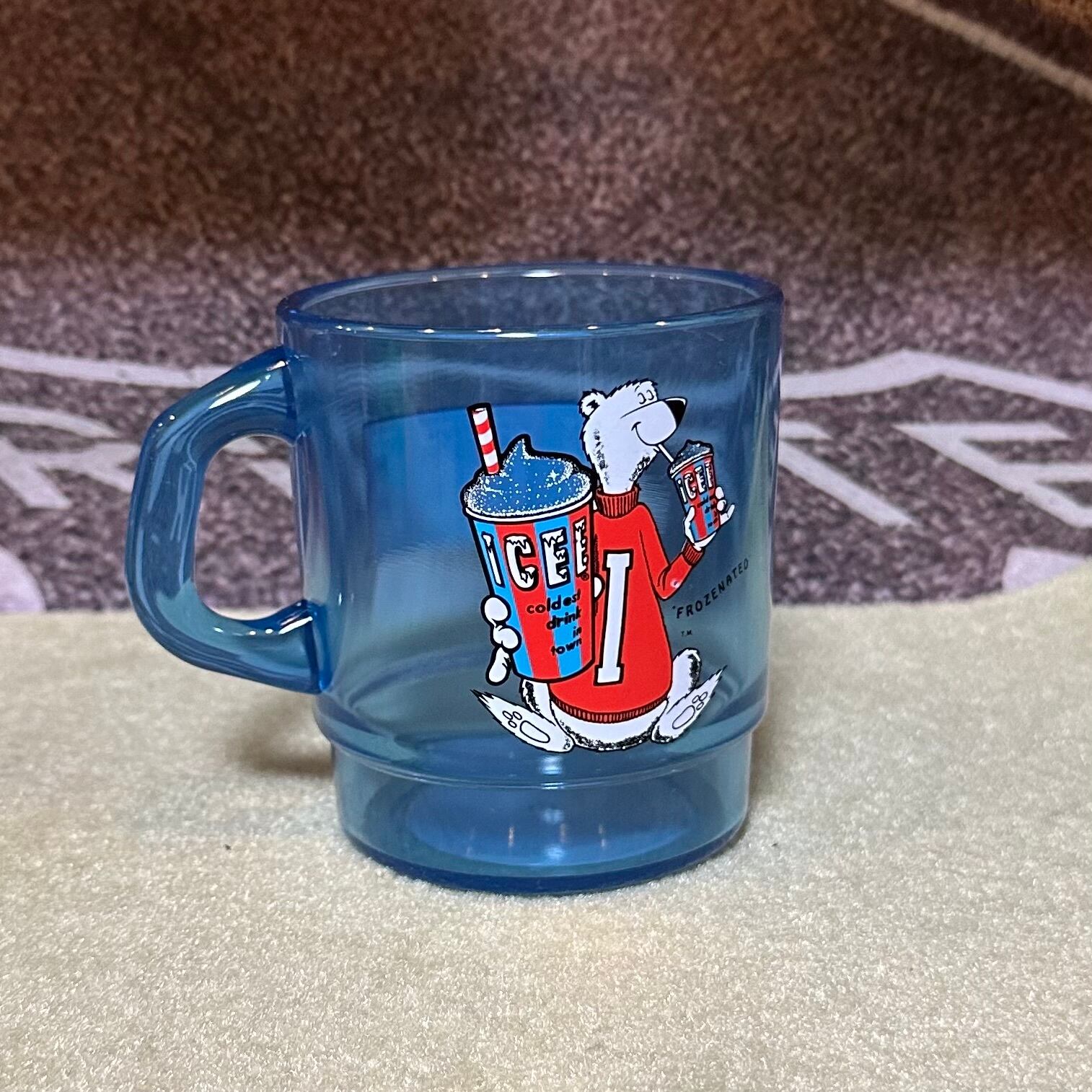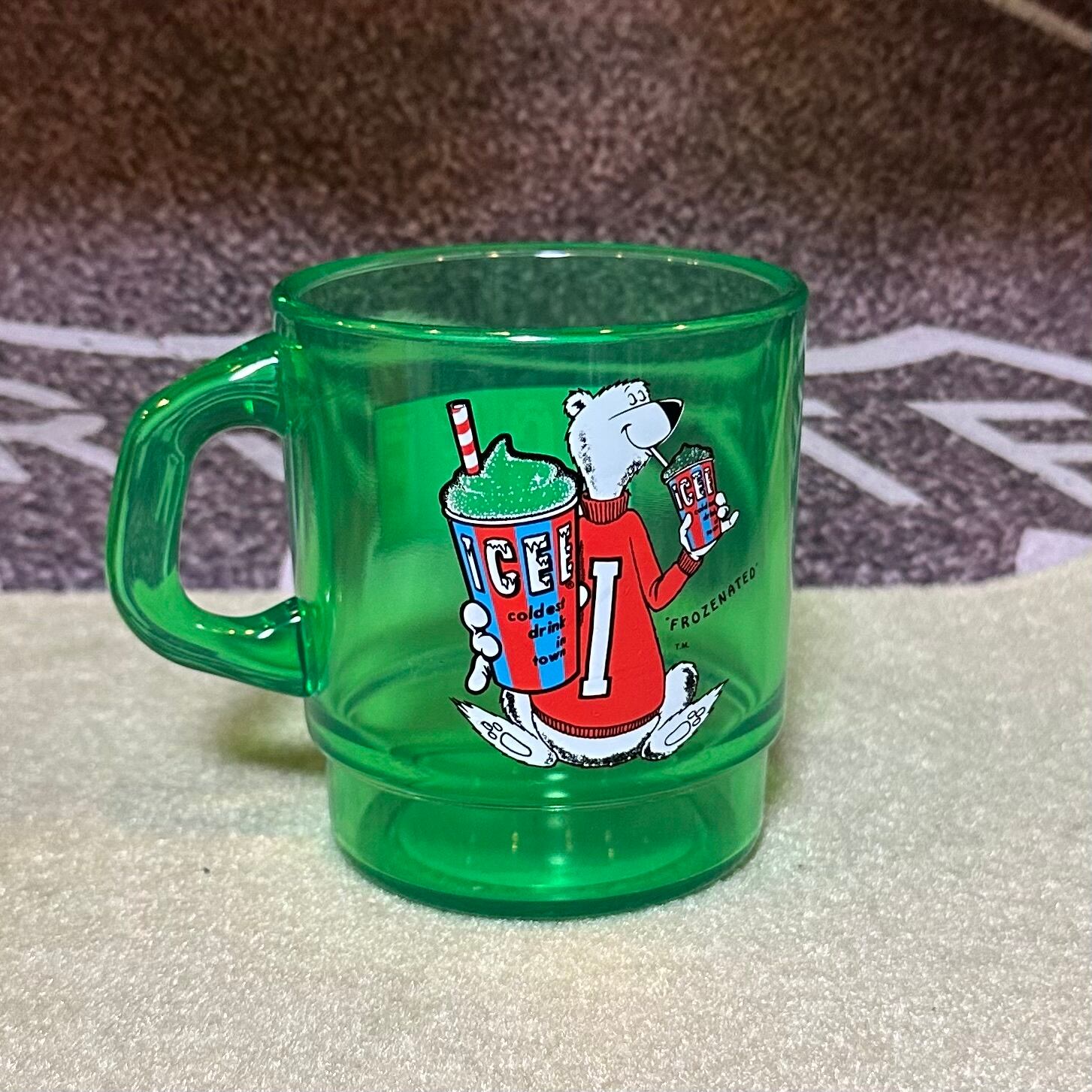 ICEE(アイシー)の公式キャラクター・ホッキョクグマがデザインされたレトロポップなプラスチックマグカップ。